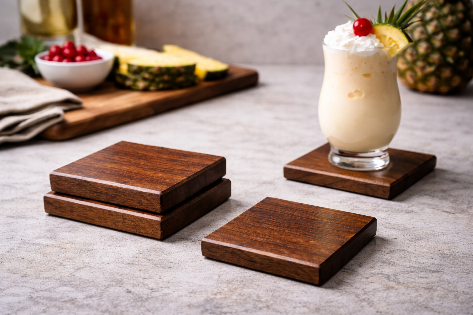 The ForgeWood Core Set includes four handcrafted solid wood coasters built for everyday homes, coffee tables, and bar setups. Designed from real lumber and finished for durability, each block delivers a sturdy, natural feel while protecting surfaces from moisture and heat. This is the ideal everyday set for both personal use and gifting.